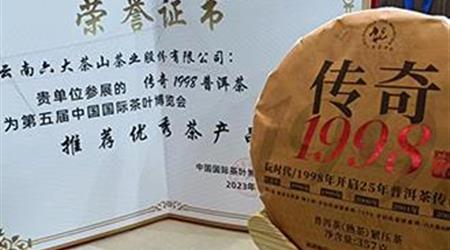 傳奇1998榮獲第五屆中國(guó)國(guó)際茶葉博覽會(huì)“推薦優(yōu)秀茶產(chǎn)品”!